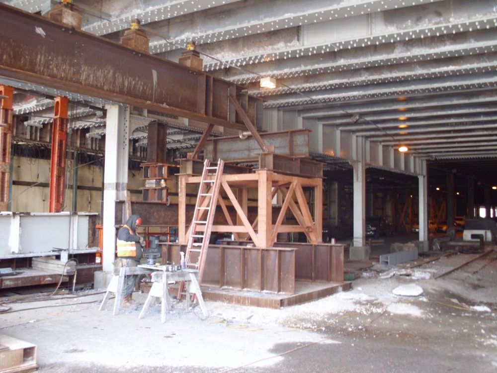 Rehabilitation of this structure in Philadelphia required numerous falsework installations. Extensive cover plating and reinforcing the existing structure.